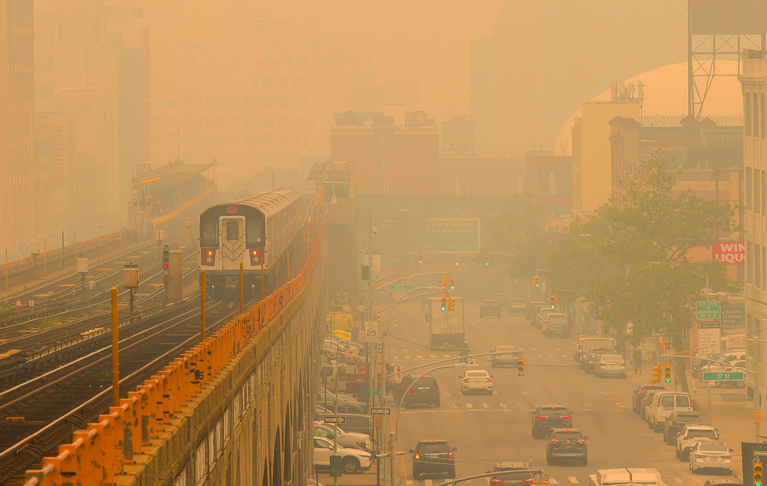 ABD hükümetine bağlı AirNow sitesi, New York şehri ve civarında hava kalitesi seviyesini turuncu renkten 165 kırmızı renge çıkardı.