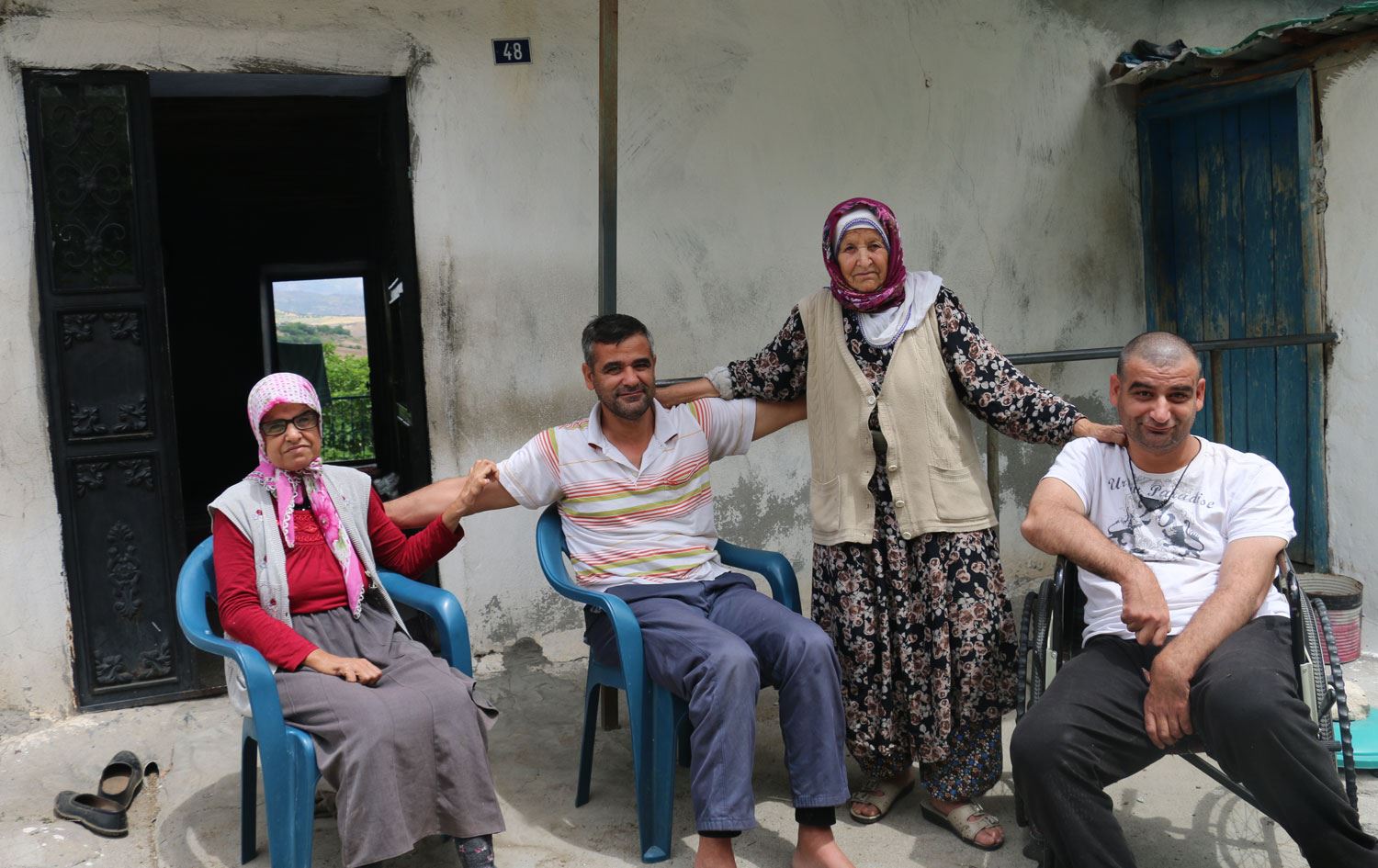 Anne Fatma Karakaya, Kürtçe yaptığı konuşmada, iki kız beş erkek yedi çocuğundan Adile (50), Mahmut (34) ve İbrahim'in (30) kemik erimesi hastalığı nedeniyle yürüyemediğini söyledi.