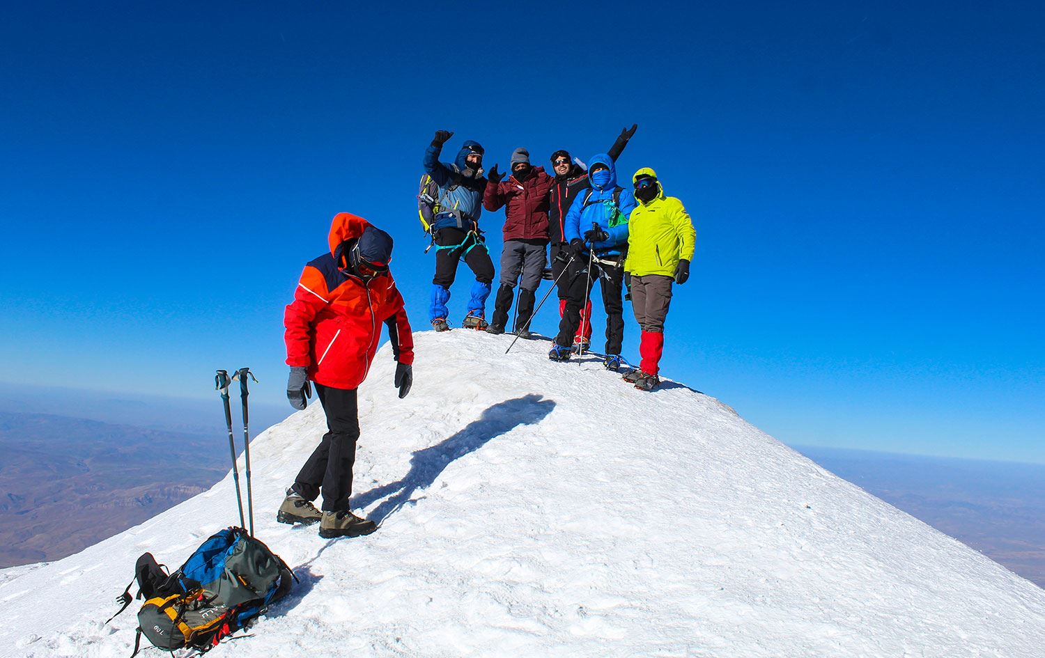 Yurt içinden ve dışından bölgeye gelmeye devam eden çok sayıda dağcı, 3 gün süren zorlu tırmanışın ardından karla kaplı zirveye ulaşıyor.