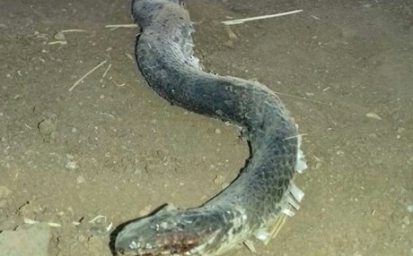 Köydeki vatandaş ve büyükbaş dahil hayvanlara saldıran yılanlar, köylülerin taş ve sopaları ile öldürülüp toprağa gömülüyor.