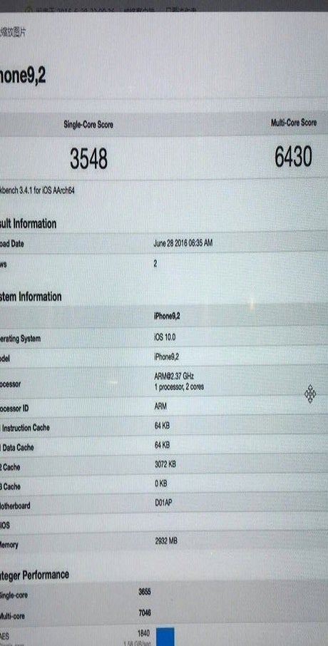 Geekbench'ten sızan hız testi sonuçlarına göre, iPhone 7 Plus, 6430 çoklu çekirdek puanına ulaşıyor. Bu puan, yeni telefonun Apple'ın şu anki en güçlü iOS cihazı olan iPad Pro 12.9'dan yüzde 15 daha hızlı olduğu anlamına geliyor.