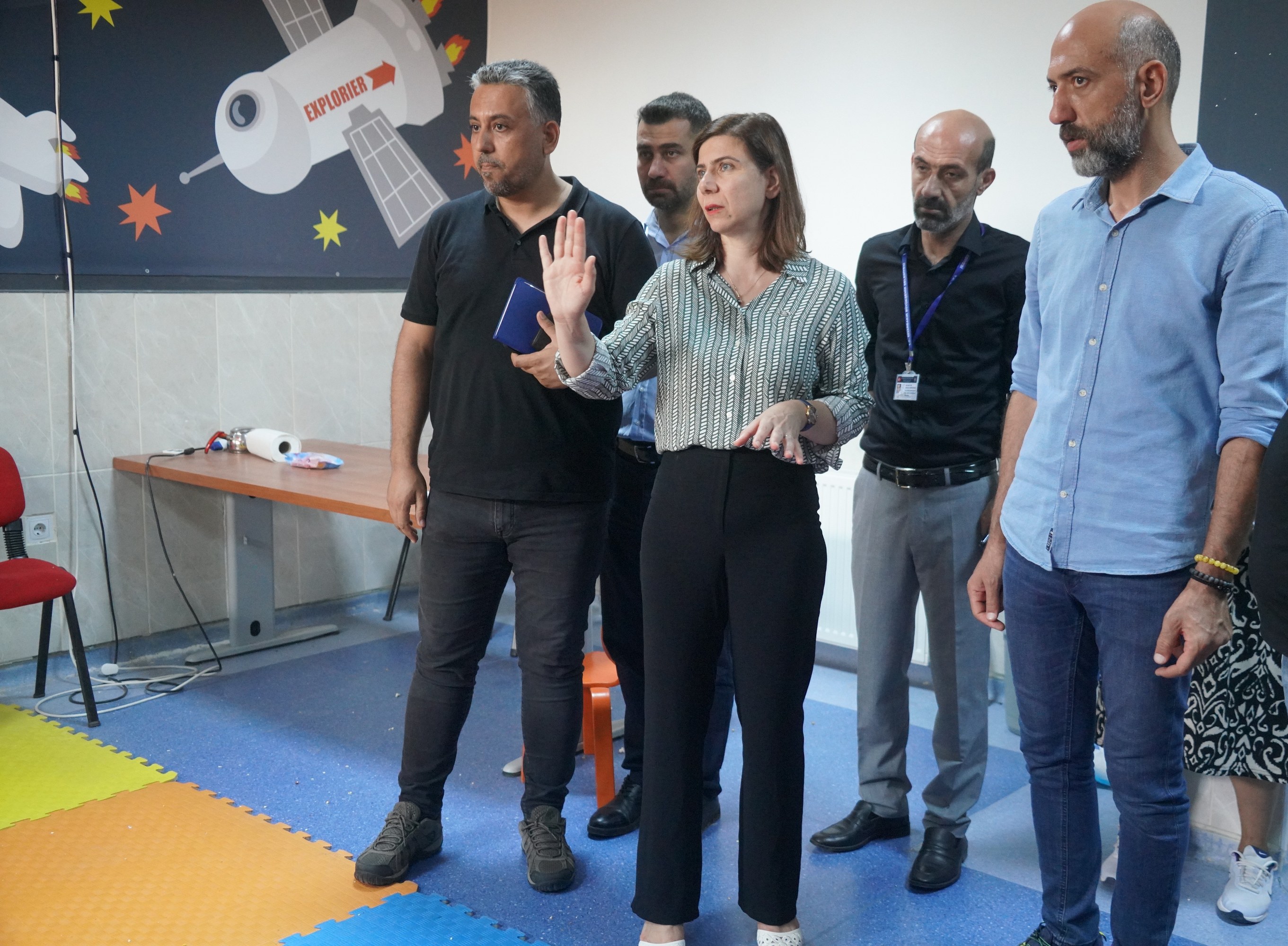 Kreşlerin mevcut durumuna ilişkin birim amirlerinden bilgi alan Eş Başkan Bucak, daha sonra kreşlerdeki sınıf, uyku odaları, yemekhane, revir, spor salonu, müzik odası, konferans salonu ve çocuk oyun alanlarını gezdi.