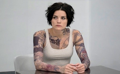 Blindspot'un Jane Doe'su Jaimie Alexander, dizideki rolü gereği belinden yukarısı tamamen geçici dövmelerle kaplı bir şekilde kamera karşısına geçiyordu.