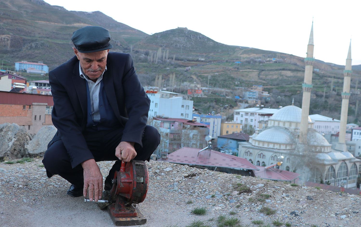 Siren sistemi görevlisi 76 yaşındaki Hadi Özer, 20 yıldır evinin damında iftar ve sahur vaktinde siren çaldığını söyledi. AA