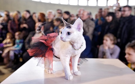 85 kedinin katıldığı yarışmada adaylar sahiplerinin kucağında podyuma çıkıp, marifetlerini sergiledi.