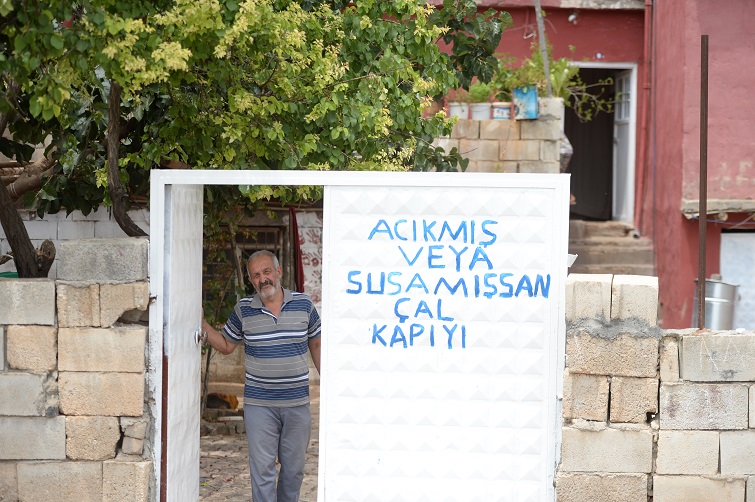 Haber Merkezi - Mardin'in Kızıltepe ilçesinin Xurs Köyü’nde yaşayan Emin Gökçen, yoldan geçen ve su istemekten utanan aileyi görünce evinin kapısına “Acıkmış veya susamışsan çal kapıyı” yazdı.