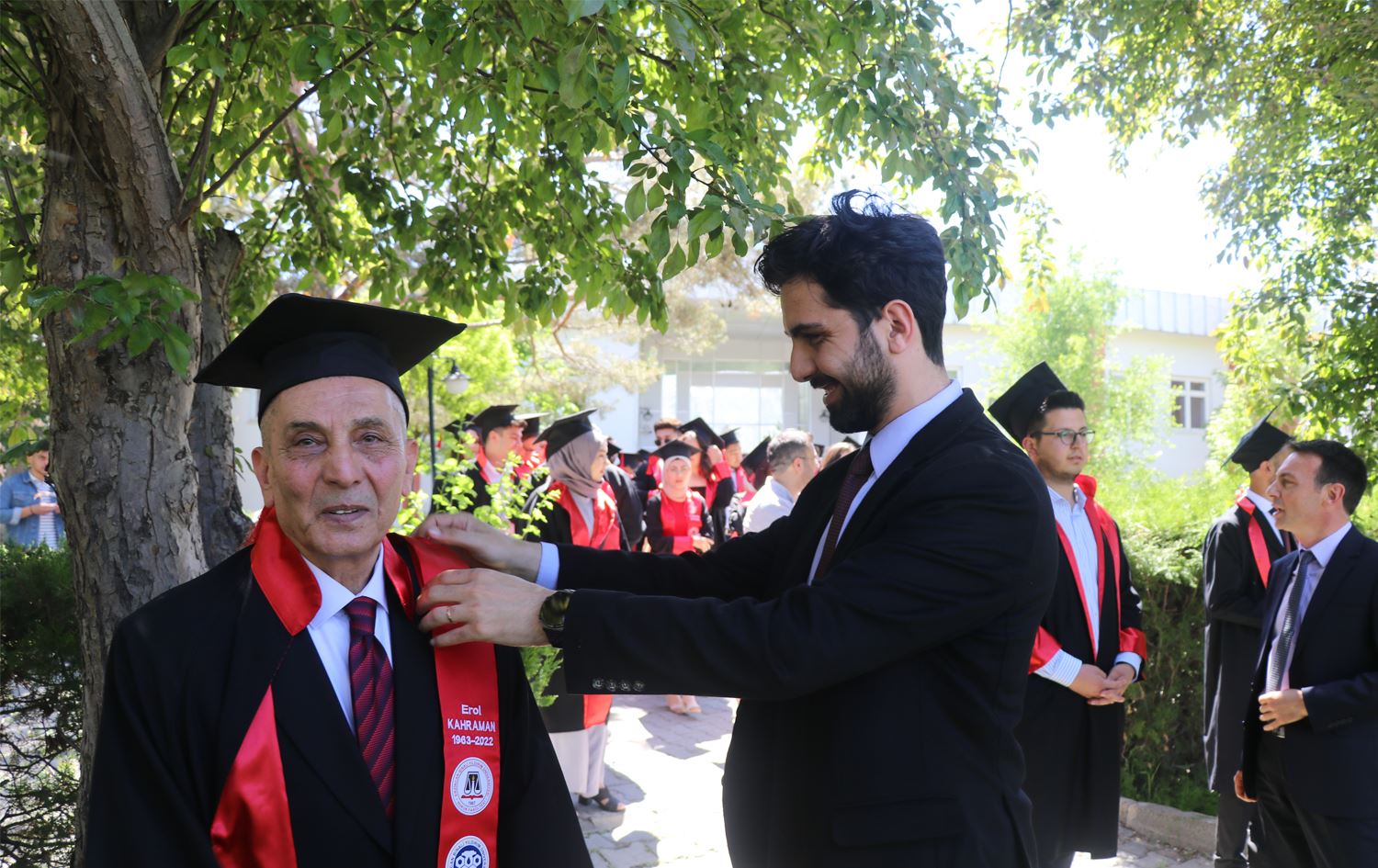 Haber Merkezi - Ankara Üniversitesi Hukuk Fakültesinde başladığı eğitimini 59 yıllık aranın ardından Erzincan Binali Yıldırım Üniversitesi (EYBÜ) Hukuk Fakültesinde 77 yaşında tamamlayan Erol Kahraman, gençlerle kep takıp mezuniyet coşkusu yaşadı.