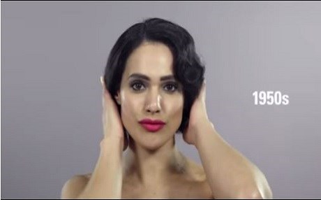 Videoda İran asıllı Amerikalı model Sabrina Saraci, kendisine yapılan makyajla 100 yıl içinde makyaj, giyim ve saç stili değişen İran kadınlarını temsil ediyor.