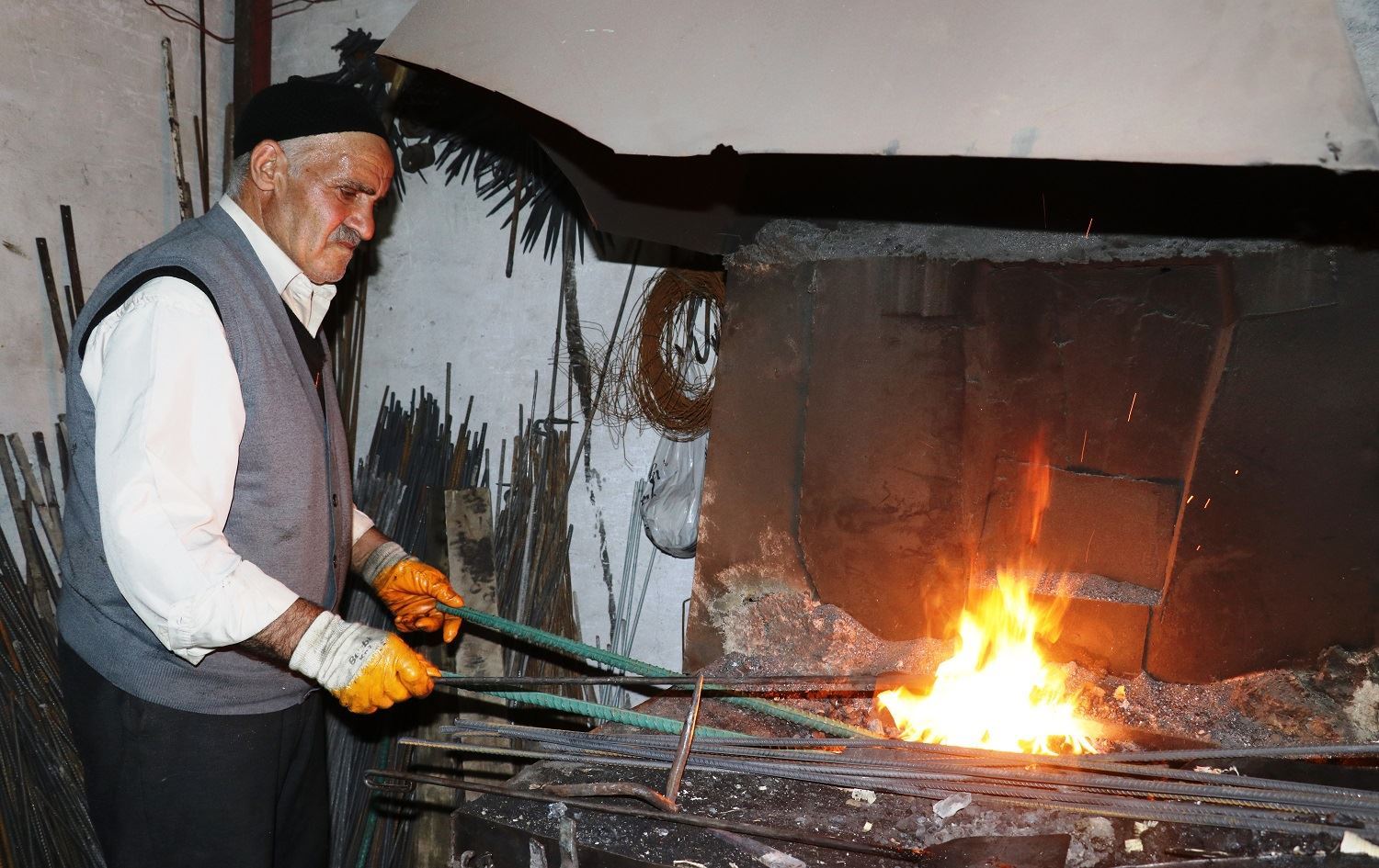 Kentte 3 yaşındayken babası vefat eden sıcak demir ustası Mehmet Uçar, 1956 yılında ustasının yanında çırak olarak başladığı demircilik mesleğini ilk günkü heyecanla yorulmadan sürdürüyor.