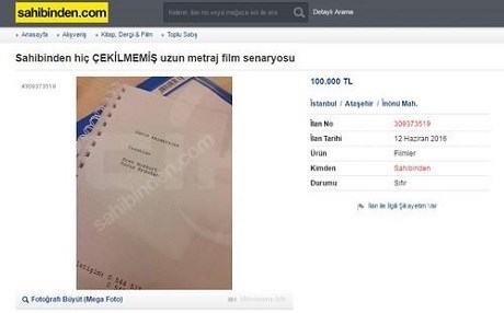 İlan sahibi hiç çekilmemiş uzun metraj film senaryosunu 100 bin TL’den satışa sundu.