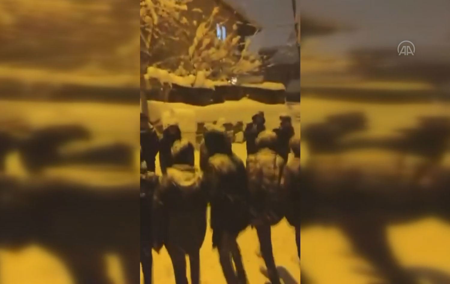Bu arada ilçe merkezinde bir grup genç, bir araçta çalınan Kürtçe şarkı eşliğinde kar yağışı sırasında halay çekti.