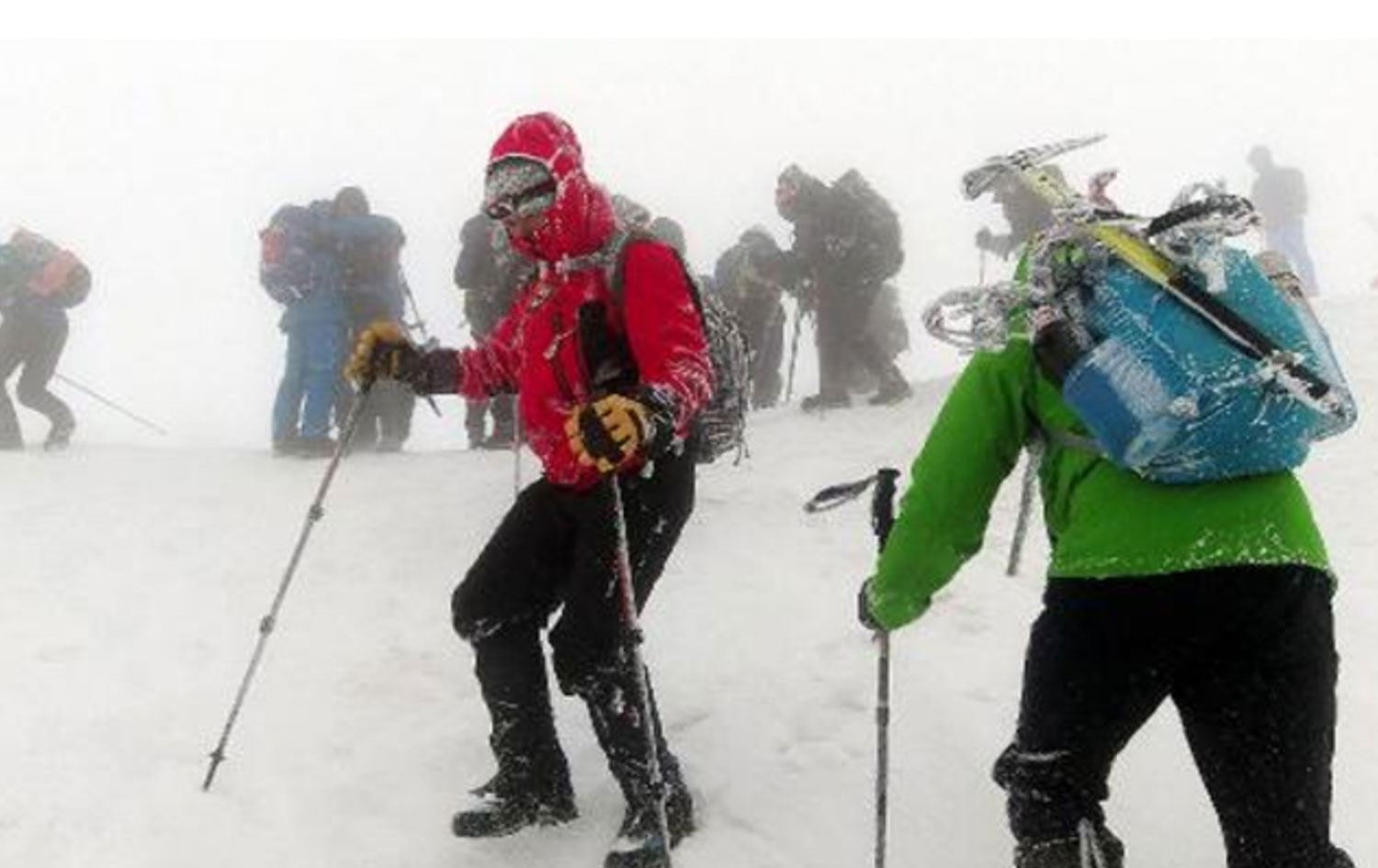 DHA’nın haberine göre İlk geceyi 3 bin 300 rakımdaki ana kampta geçiren dağcılar, 19 Temmuz günü kampı 4 bin 200 metre yüksekliğe çıkardı. Gece yarısından sonra saat 02.30'da şapka buzullarda tırmanışa geçen ekip, saat 07.30'da deniz seviyesinden 5 bin 137 metre yükseklikteki zirveye çıkış yolunda tipiye tutuldu. Görüş mesafesinin zaman zaman 3 metreye kadar düştüğü tırmanışta rehberler GPS cihazını kullanarak yönlerini bulup zirveye ulaştı.