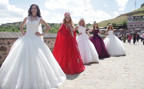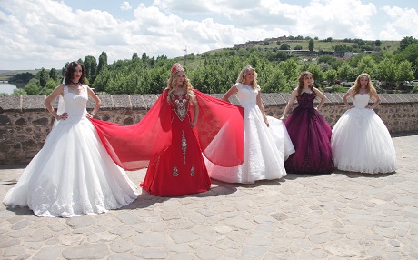 Diyarbakır'ın Kayapınar ilçesinde gelinlik ve yöresel kıyafeti satışı yapan bir işyeri, modellerini tanıtmak üzere kente 5 Rus manken getirdi.