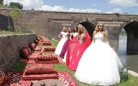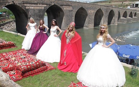 Haber Merkezi - Diyarbakır’da gelinlik ve yöresel kıyafet satışı yapan bir işyerinin defilesine katılmak üzere gelen 5 Rus manken, tarihi surları ve On Gözlü Köprü'yü gezdi, davul zurna eşliğinde halay çekti.