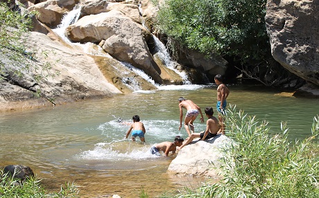 Hava sıcaklığının 30 derecenin üstüne çıktığı beldede çocuklar, serinlemek için Balkaya Dağları eteklerindeki akarsulara akın etti.