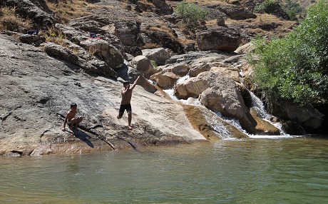 Toplanıp akarsulara gittiklerini anlatan Tekin, "Buraya sürekli yüzmeye geliyoruz. Balkaya Dağları'nın eteklerinde yüzüyoruz. Arkadaşlarımızla güzel zaman geçiriyoruz" dedi.