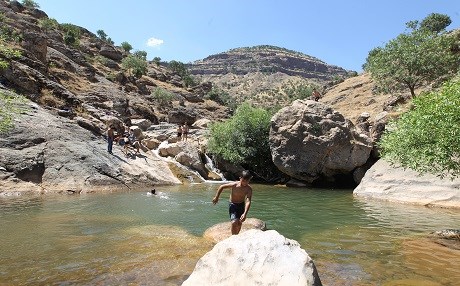 Haber Merkezi - Hakkari'nin Şemdinli ilçesinin Derecik beldesinde yaşayan çocuklar, Balkaya Dağları eteklerindeki akarsularda yüzmenin keyfini sürüyor.