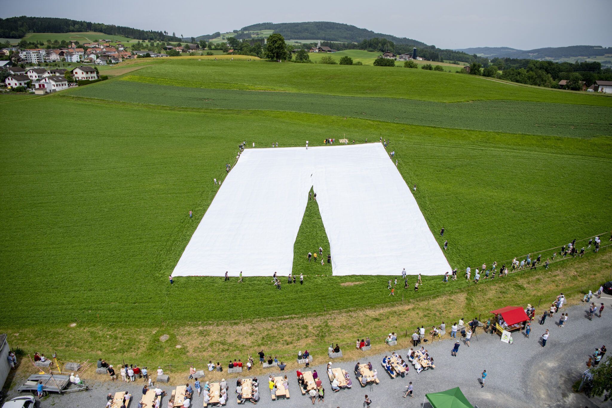 Pantolon, törenle tanıtılarak gezdirildi. Tören esnasında İsviçre ve Kürdistan bayrakları açıldı.