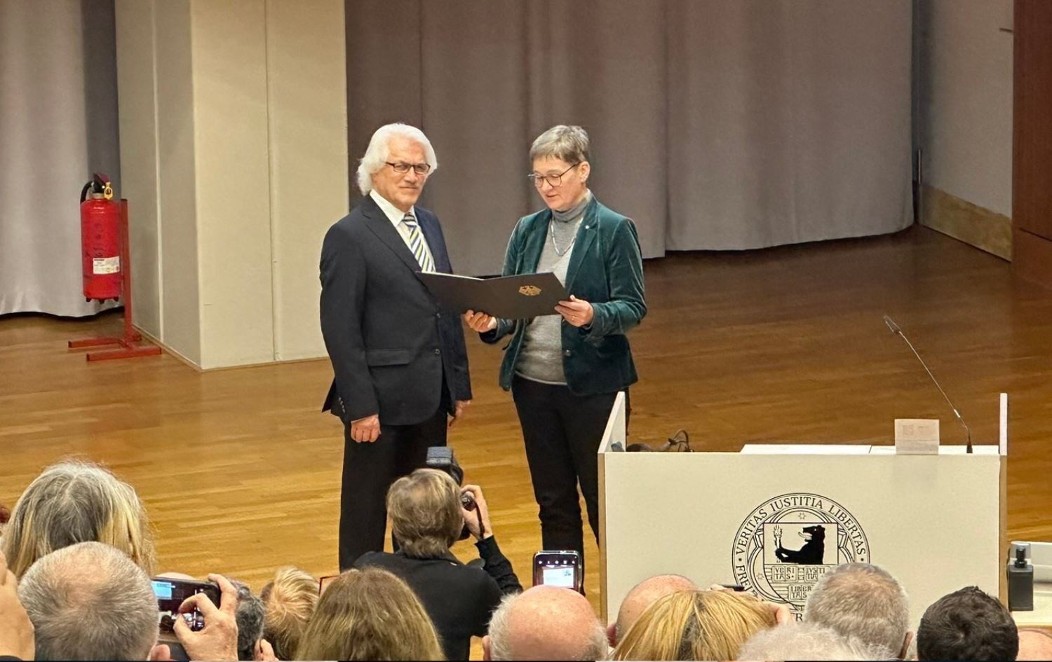 Bakan Ulrike Gote törende yaptığı konuşmada Kürt akademisyenden övgü ile söz ederek Feryad Fazıl Omer'in dünya çapında insan haklarını koruma konusundaki olağanüstü çabalarına atıfta bulundu.