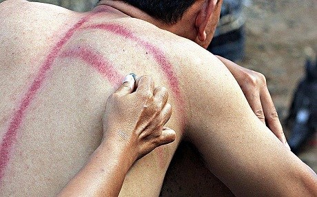 Tedavi sırasında bozuk parayla çizik atılan yerlerde kırmızı renkli izler oluşuyor. Halk, kızarıklık ne kadar fazlaysa rahatsızlığın da o kadar çok olduğunu düşünüyor.