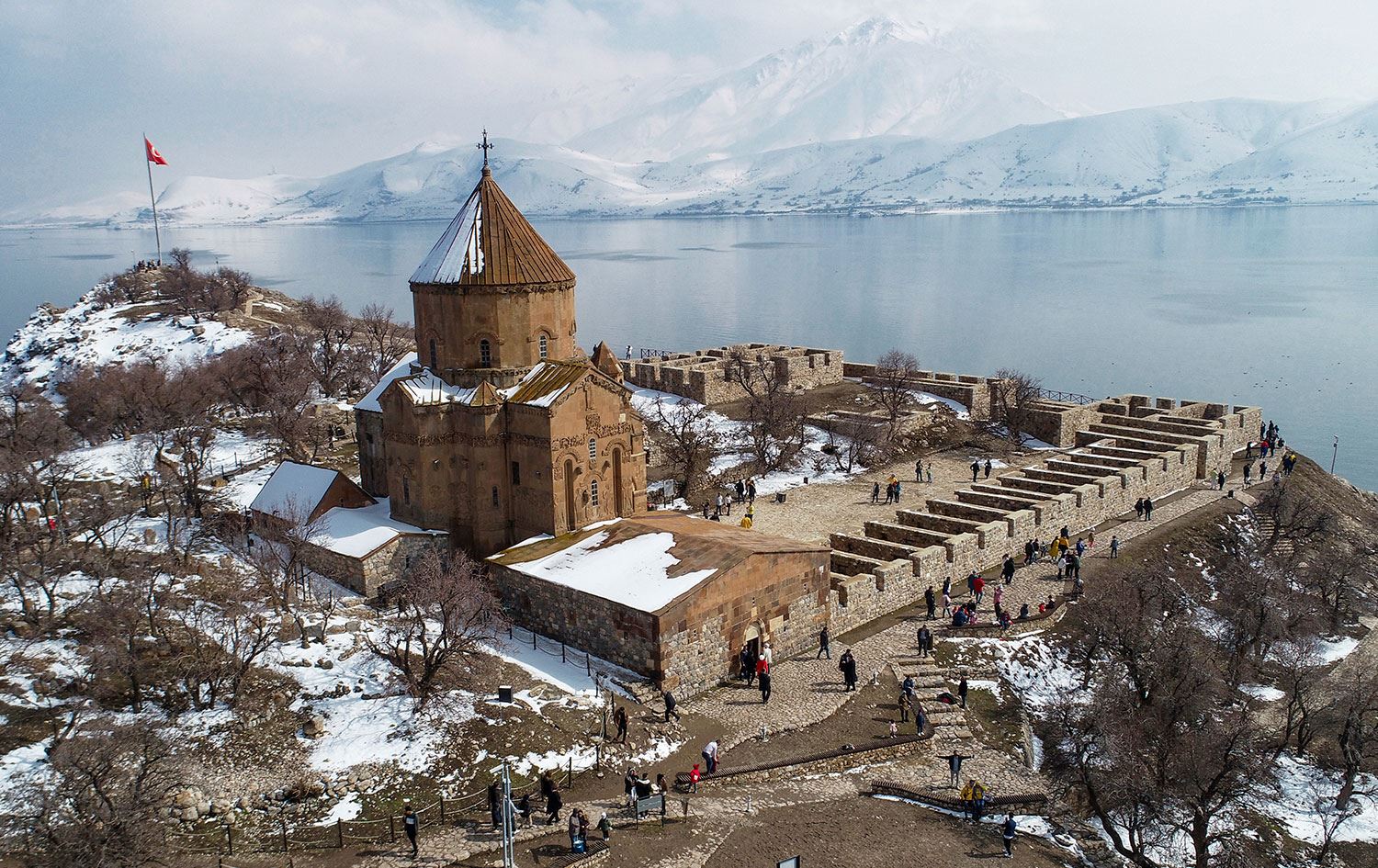 Van Gölü'nün eşsiz maviliği ortasındaki ada ve üzerindeki kiliseyi görmeden kentten ayrılmayan turistler, Edremit ve Gevaş ilçelerindeki iskelelerden kalkan teknelerle yarım saatlik yolculuğun ardından adaya ulaşıyor.