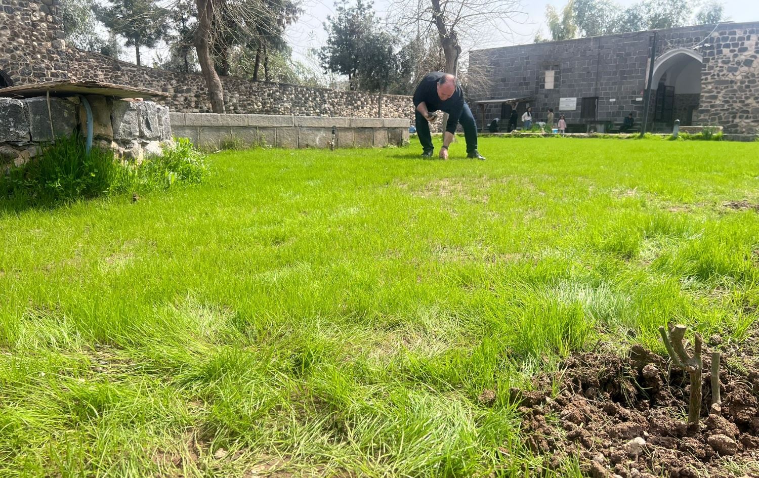 Çevre düzenlemesi çalışmaları kapsamında türbe bahçesine çim ekimi yapan, çok sayıda gül ve mevsimlik çiçek diken Ebret, her gün bizzat çalışmaların başında durarak sulama ve bakım işlerini de üstleniyor.