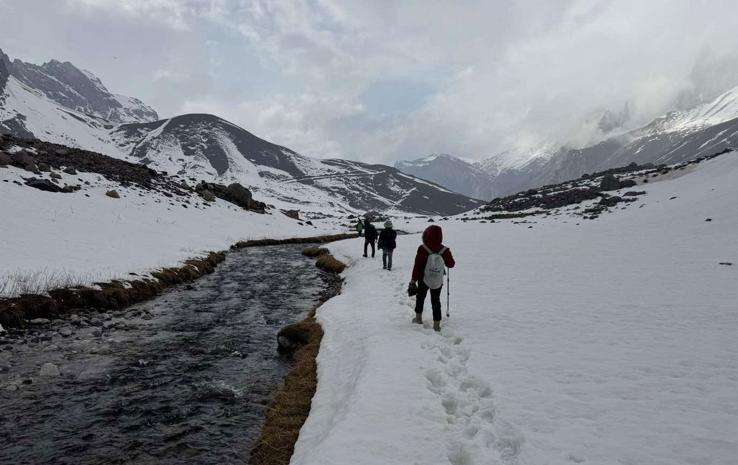Ziyaretçilerin gözde yerlerinden olan 4 bin 135 rakımlı dağın eteklerindeki buzulları gezen doğaseverler ve fotoğraf tutkunları, bölgede saklı kalan eşsiz güzellikleri keşfetme imkanı buluyor.