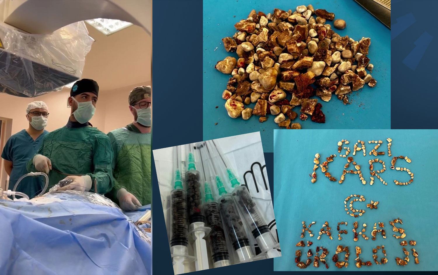 "Önce bir tarafı temizledik, çok zahmetli olacak diye esas büyük olanı sona bıraktık. Bir seansta bir tarafı temizledikten sonra araya bir süre koyduk, hasta iyileşti. İkinci seansta da 5 santimlik olan taş kısmını boşalttık. Tek tek taşları toplamak yaklaşık 4 saate yakın süren zorlu, çetin ameliyat oldu. Bu büyüklükte bir taş görüyorsak genellikle bu taşlar tek parça halinde olur. Biz onları kırarak küçültürüz. Boncuk tanesi gibi küçük yüzlerce taşı bir arada görmek bizim için de deneyim oldu."
