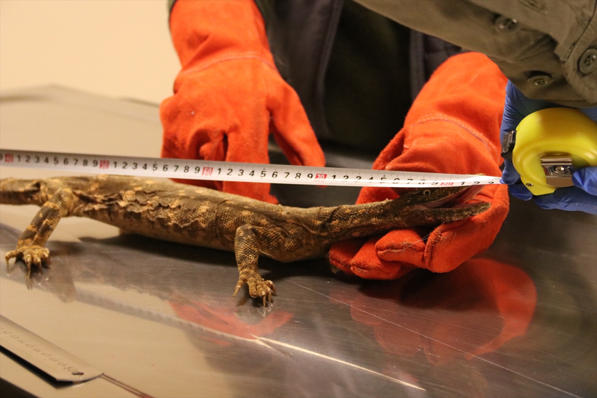 Tek Tek Dağları Milli Parkı bölgesinde bitkin halde çöl varanı bulan vatandaşlar, durumu Doğa Koruma ve Milli Parklar Genel Müdürlüğü Gölpınar Yaban Hayvanı Kurtarma ve Rehabilitasyon Merkezi'ne bildirdi.