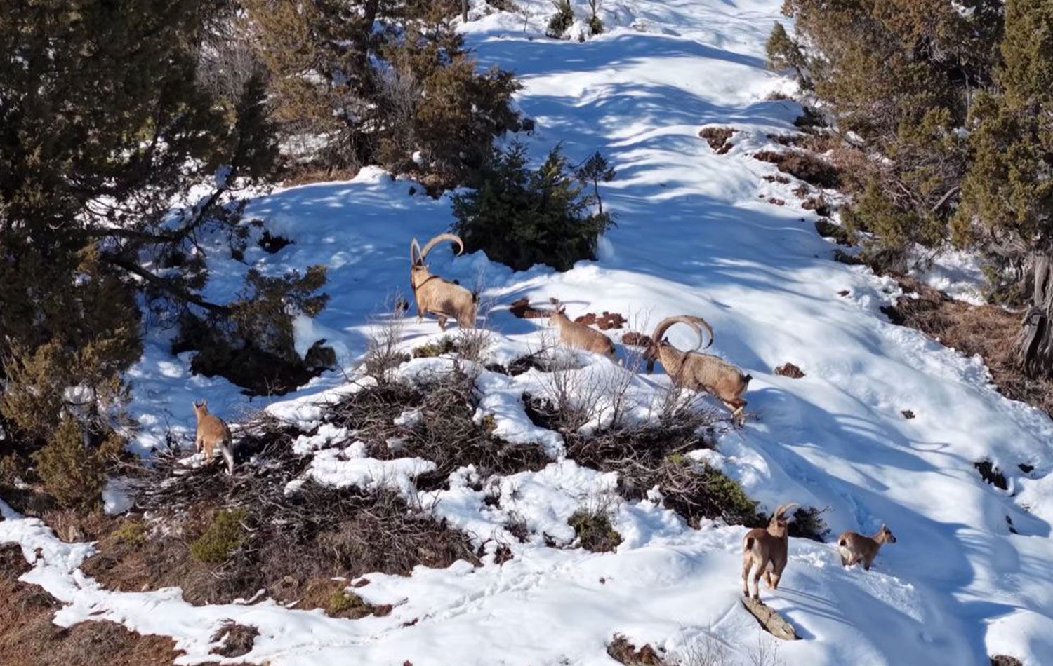 Dersim (Rûdaw) – Dersim'de, 1971'de “Milli Park” ilan edilen Munzur Vadisi Milli Parkı'nda karlı dağlardan çiftleşmek ve beslenmek için inen koruma altındaki “Teke” adı verilen dağ keçileri, dron kamerasıyla görüntülendi.