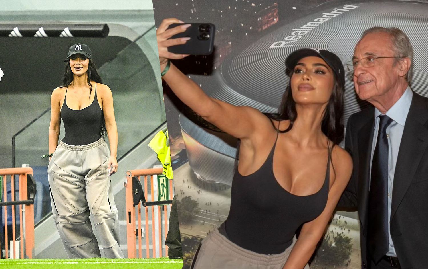Kim Kardashian ile oğlu Saint West maçtan önce ve sonra Real Madrid'in mevcut başkanı Florentino Perez ve futbolcularla selfi çektirdi.