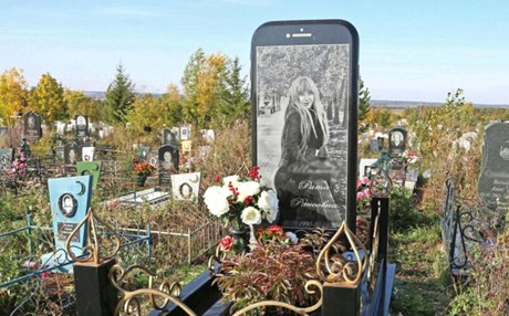 Rusya'nın Ufa kentinde sıra dışı bir mezar taşı yapıldı. Kentin Güney Mezarlığında 28 yaşındaki Rita Raisovna adlı genç kızın mezarı üzerine, çok sevdiği telefonu iPhone 6 şeklinde mezar taşı dikildi.