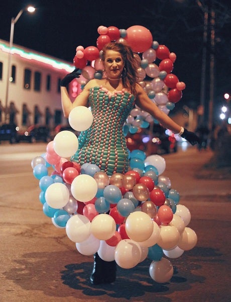 Rengarenk balonlardan büstiyerler, etekler, elbiseler ve hatta şapkalar yapan Molly Mungan, her bedene uygun kıyafet üretebiliyor.