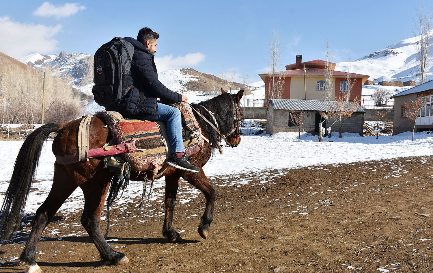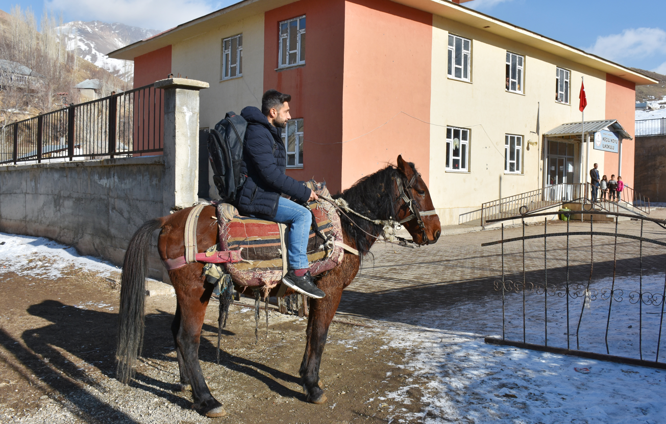 Haber Merkezi - Hakkari'nin Yüksekova (Gever) ilçesine bağlı Bağdaş (Peranis) köyünde yaşayan ücretli öğretmen Musa Tavşan, ders verdiği okulun bulunduğu yaklaşık 10 kilometre mesafedeki köye atla gidiyor.