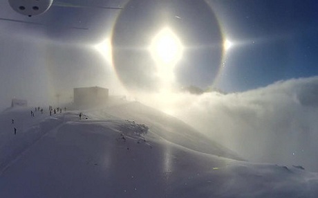 Atmosferde asılı halde bulunan küçük buz kristalleri üzerine ışığın yansımasıyla sanki gökyüzünde 3 güneş varmış gibi bir izlenime yol açıyor.