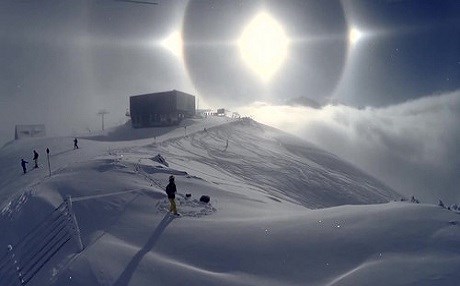 Haber Merkezi - Avusturya Alpleri’nde “yalancı güneş” olarak bilinen ve havadaki küçük buz kristalleri üzerine ışığın yansımasıyla oluşan meteorolojik olay kameraya yansıdı.