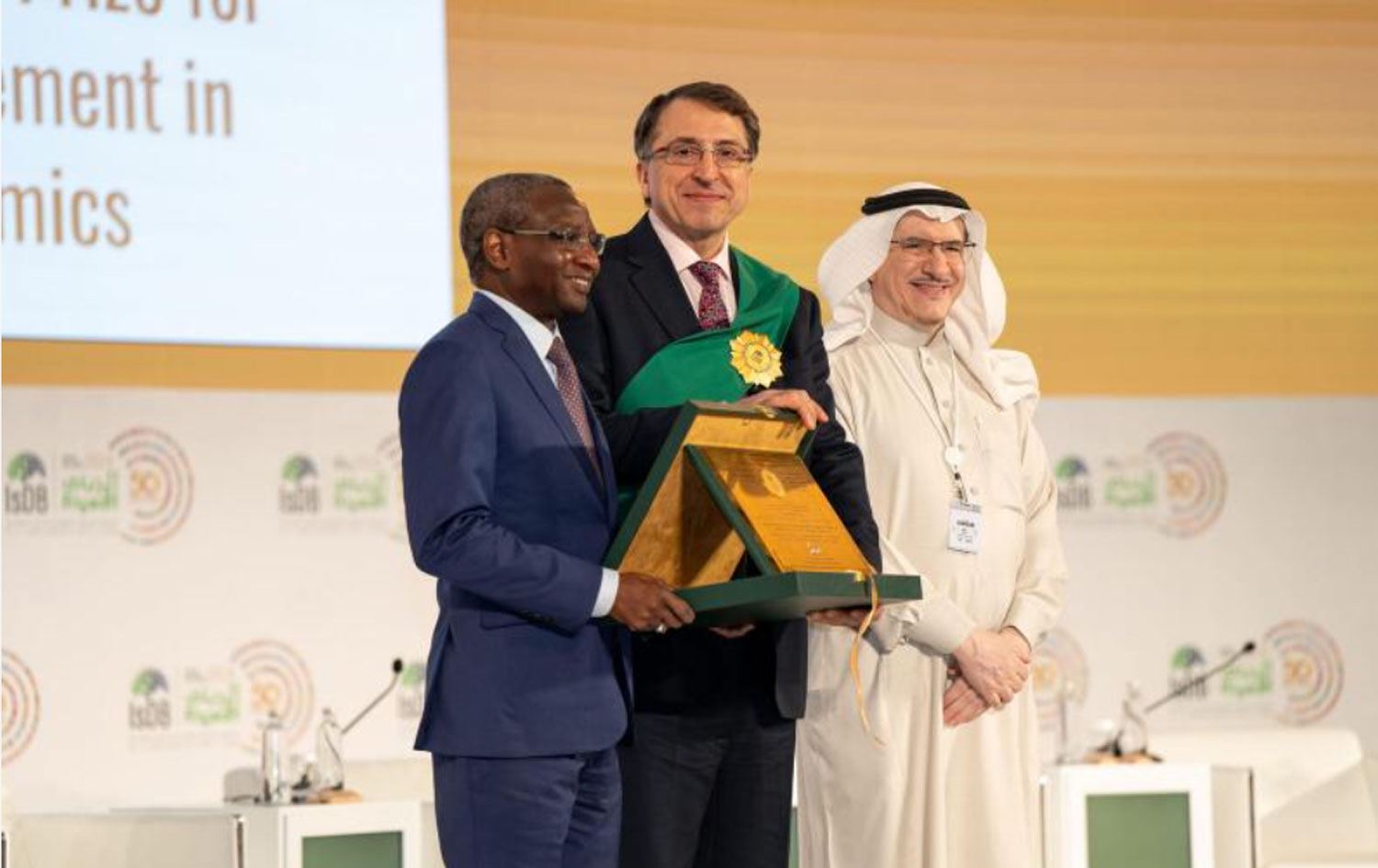 Prof. Asutay, ödülünü İslam Kalkınma Bankası Başkanı Dr. Muhammad Al Jasser ve Başkan Yardımcısı Dr. Mansur Muhtar’ın elinden aldı.