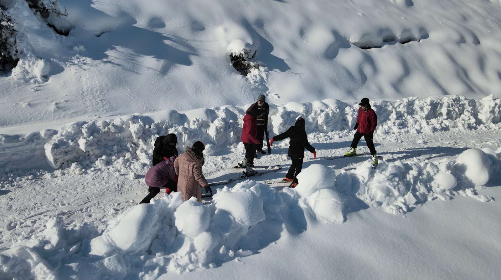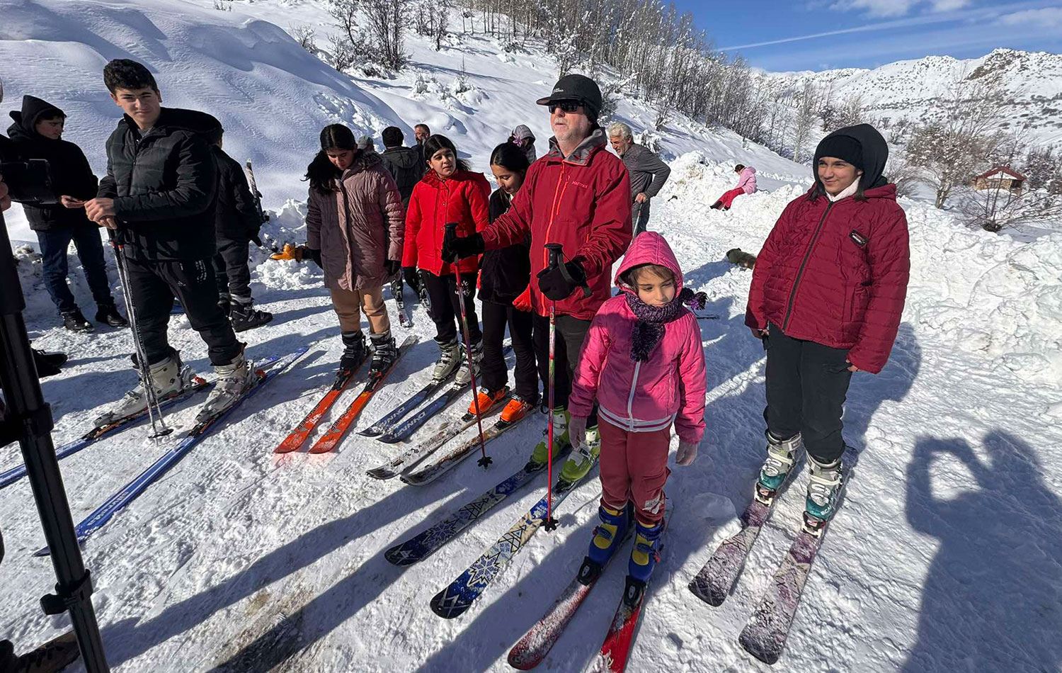 Anadolu Dağcılık Kulübü Başkanı ve Türkiye Dağcılık Federasyonu'nda kayak hakemi olan Hıdır Karadağ, çocuklara kayak yapmayı öğretiyor. / Foto: Ali Haydar Gözlü