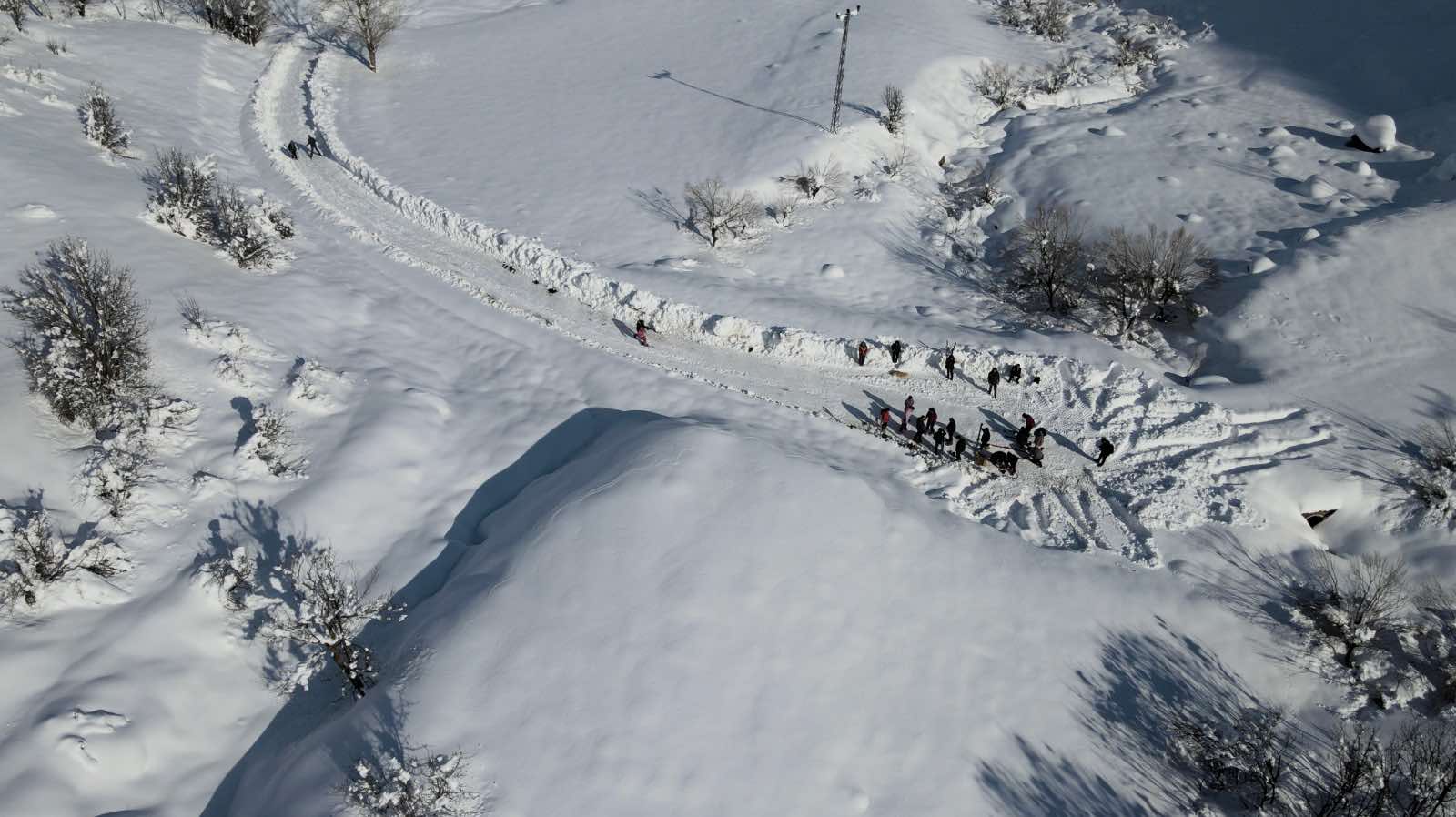 Köylüler, karın sert olduğu zamanlarda 3 bin rakımlı Karataş Tepesi'nden, normal zamanlarda ise köy içinde kayarak kış mevsiminin sıkıcılığını aşmaya çalışıyor.