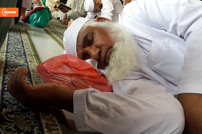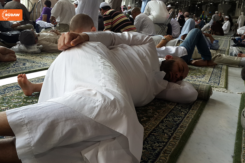 Umre ziyaretinde bulunan bir Kürt, Kabe Camii’nde 48 saat boyunca uyumuş. Rûdaw’a konuşan ziyaretçi, “Camiden çıkmak istemiyorum. Bu yüzden burada yatıyorum. Bu sevaptan mahrum kalmak istemiyorum. İlk kez buraya geliyorum, görüntüler çok güzel. Burası güvenli bir yer, herkes burada huzurlu” dedi.