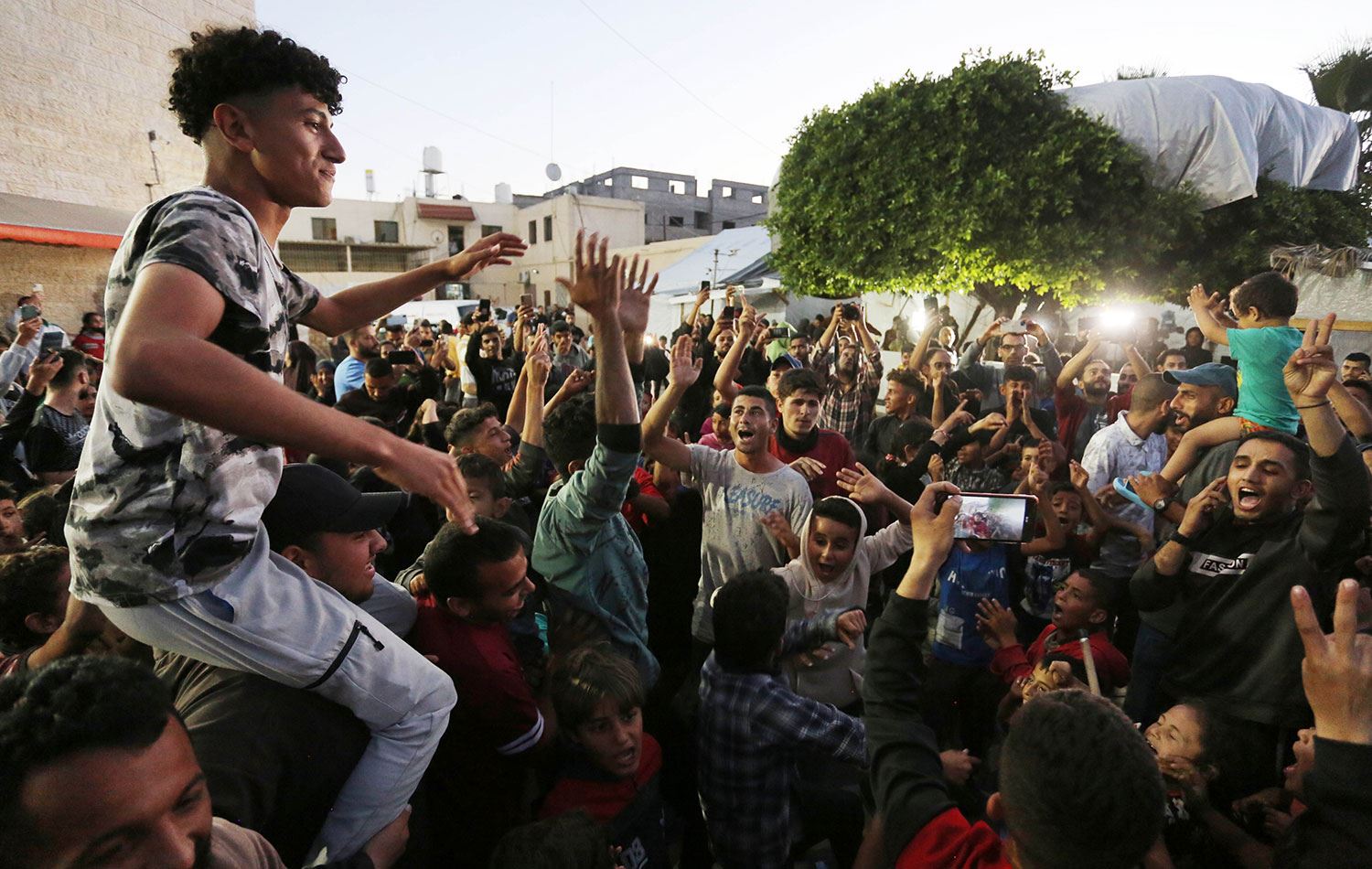 Hamas'ın ateşkes anlaşmasını kabul ettiğini açıklamasının ardından Filistinliler sevinç gösterisinde bulundu. / AA