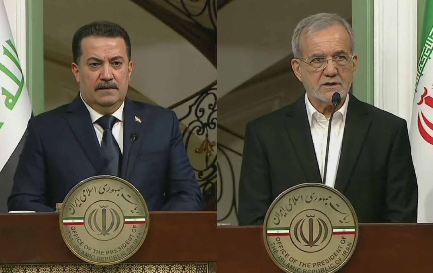 Tahran’da bulunan Irak Başbakanı Muhammed Şiya es-Sudani öğlen saatlerinde İran Cumhurbaşkanı Mesud Pezeşkiyan ile bir araya geldi.