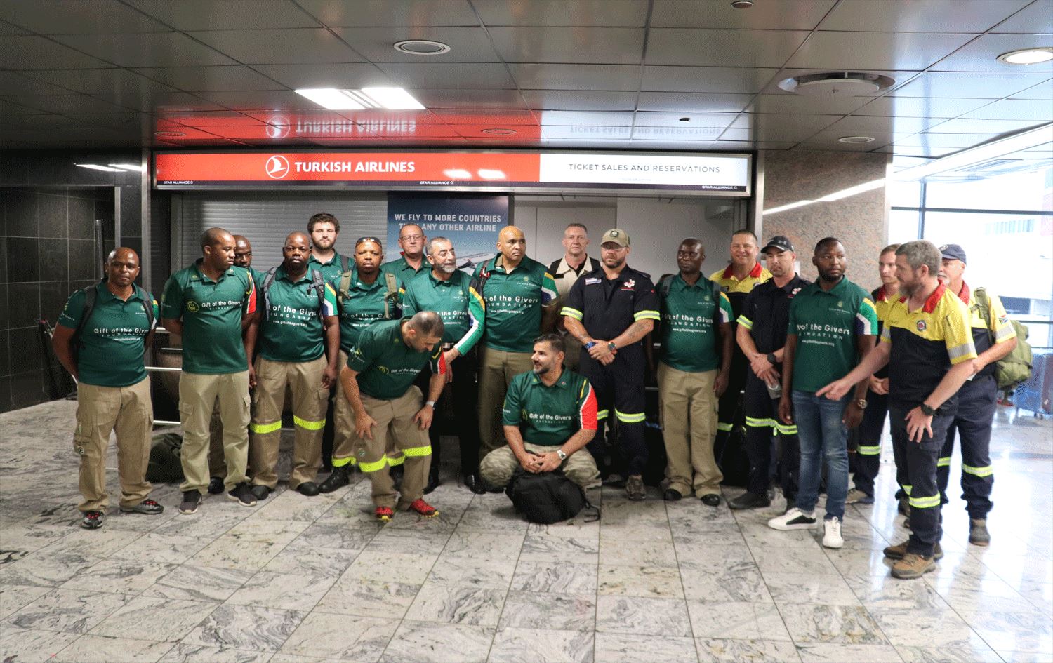 Gift of Givers ve SARZA tarafından oluşturulan 32 kişilik şehir arama kurtarma ekibi ile 1 tona yakın arama ekipmanı ve Al İmdat Vakfı tarafından sağlanan insani yardım malzemeleri, Türk Hava Yolları (THY) uçağı ile Johannesburg O.R. Tambo Uluslararası Havalimanı'ndan İstanbul'a yollandı.