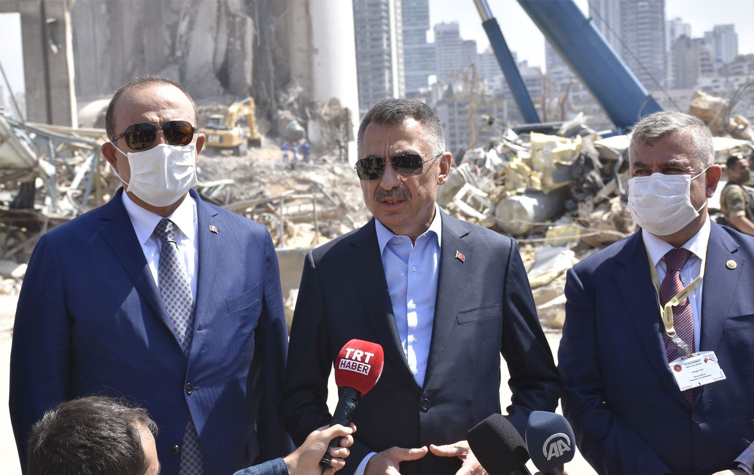 Haber Merkezi – Türkiye Cumhurbaşkanı Yardımcısı Fuat Oktay, Beyrut Limanı ve çevresindeki binaların tekrar inşası konusunda Türkiye'nin sonuna kadar yardıma hazır olduğunu, Beyrut Limanı tekrar ayağa kaldırılıncaya kadar Mersin Limanı'nın Lübnan'ın hizmetinde olacağını söyledi.