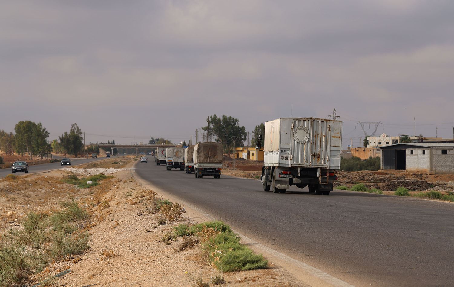 Suriye Kızılayı, Süveyda’ya yaklaşık 50 bin kişinin istifade edeceği gıda ve temizlik kolileri ile sağlık kitlerinden oluşan insani yardım konvoyu ulaştırmıştı. / AA