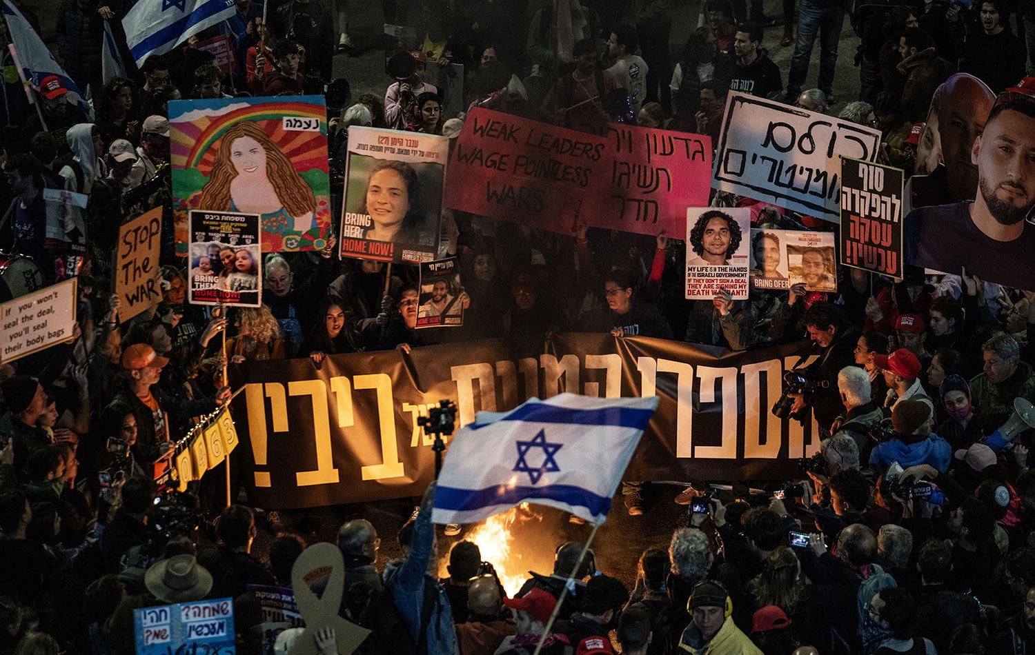 İsrail'in başkenti Tel Aviv'de önceki gün toplanan yüzlerce kişi, Gazze'de ateşkes ve rehine takası anlaşması talebiyle gösteri düzenledi. / Foto: AA