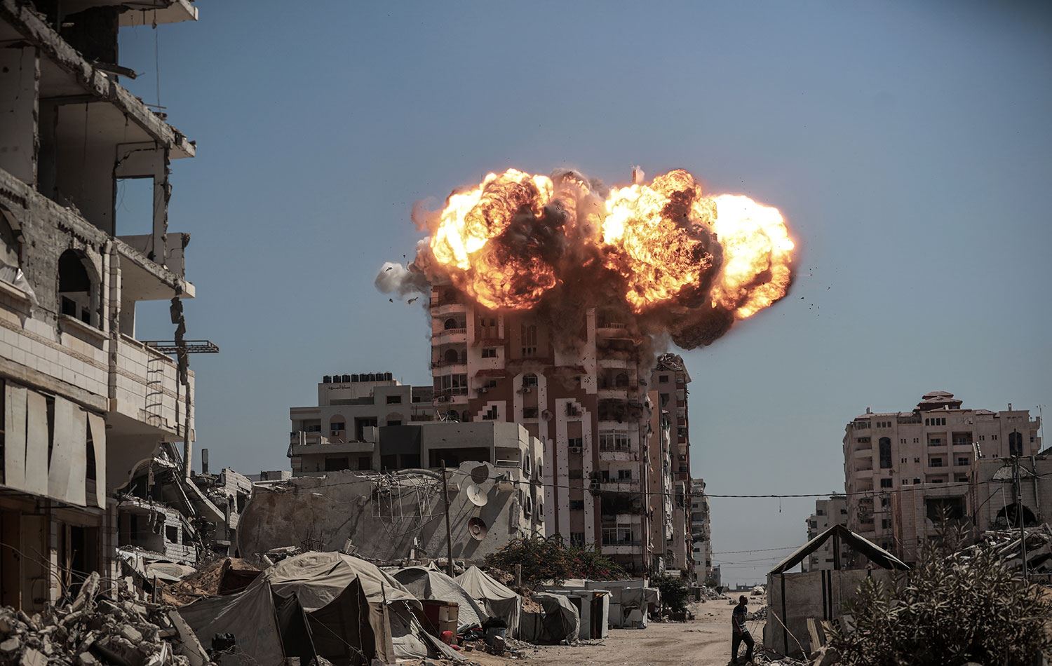 İsrail ordusunun hava saldırıları sonucu Gazze kentinde çok sayıda bina ve yüksek katlı kule vurularak yıkıldı. Kentin batısındaki Tel el-Hava mahallesinde bulunan Mehna Apartmanı da hedef alınırken, saldırılar sonrası bölgeden yoğun dumanlar yükseldi. /AA