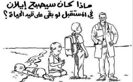 Rania El Abdullah, Alan Kurdi ile ilgili yaptığı karikatürde, “Eğer Alan Kurdi ölmeseydi doktor olurdu, öğretmen olurdu ya da iyi bir baba olurdu” ifadelerini kullandı. (Ajanslar)