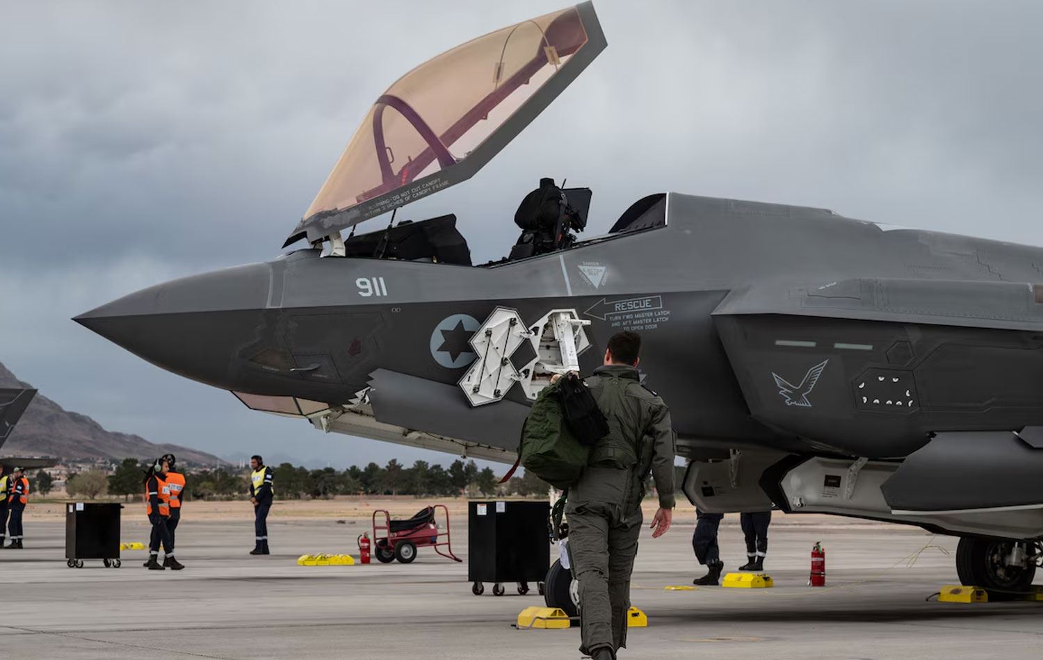 Amerikan Lockheed Martin firması tarafından üretilen ve muharebede ilk defa İsrail tarafından 2018'de kullanılan "hayalet savaş uçağı" F-35'in "Adir" versiyonunda kanatlara takılan silah bölmeleriyle mühimmat kapasitesi 8 bin 100 kilograma kadar artırılmıştı.