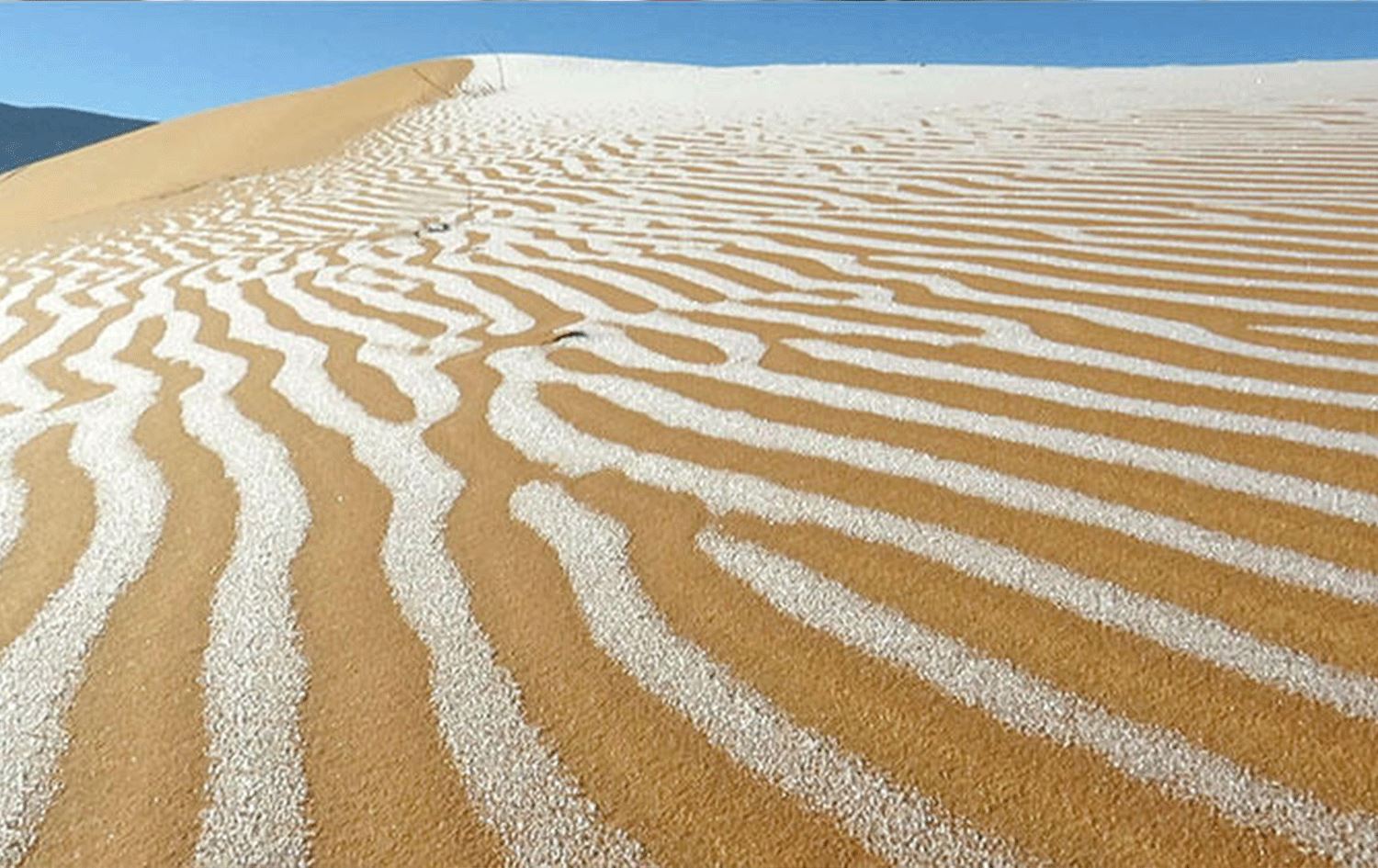 Kasabaya daha önce 1979, 2017 ve 2018 yıllarında kar yağmıştı. Deniz seviyesinden yaklaşık 1000 metre yüksekte bulunan kasaba, ‘çölün geçidi’ unvanına sahip.